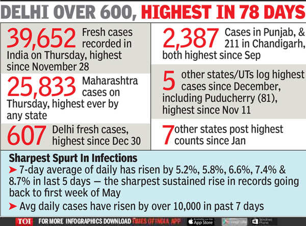 Covid 19 Coronavirus Cases India Sees Sharpest 5 Day Rise In Covid 19 Cases In 10 Months India News Times Of India